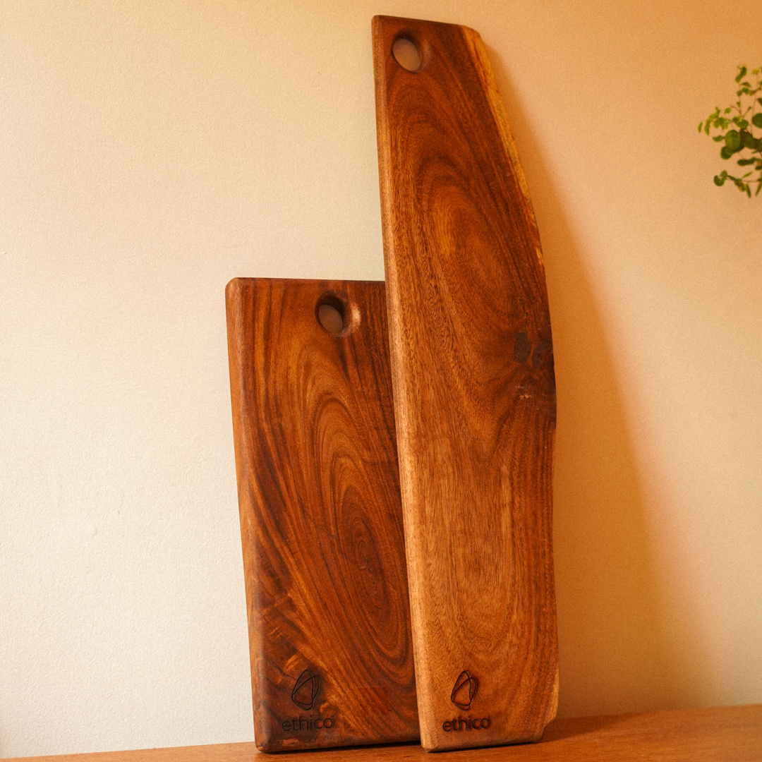 Elevate your serveware collection with Ethico’s Charcuterie Board, a one-of-a-kind piece handcrafted from leftover wood. Each board is uniquely shaped, celebrating the natural beauty and character of the wood, ensuring no two pieces are alike.