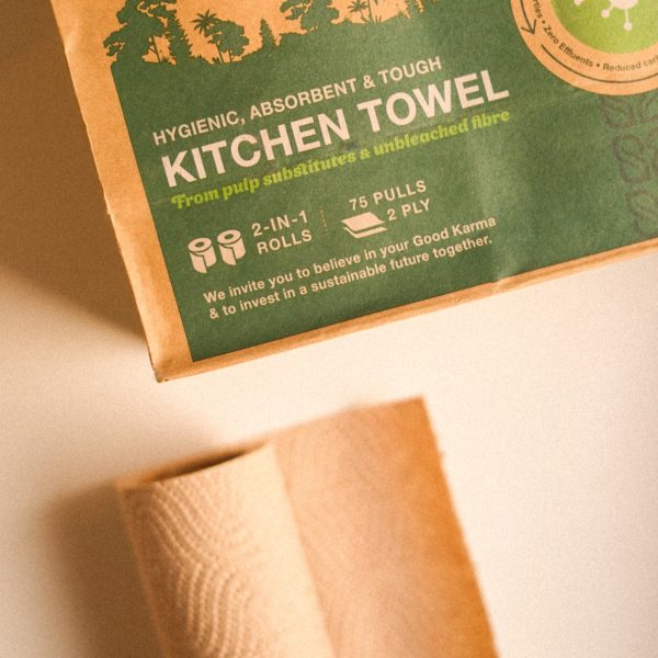 Kitchen paper rolls may be very convenient to use and throw, but it takes a lot of trees to make those. Good Karma Kitchen Towel is made exclusively of unbleached fibre and pulp substitute. It’s super soft, absorbent and easy to tear – all while minimizing the carbon footprint and environmental impact.